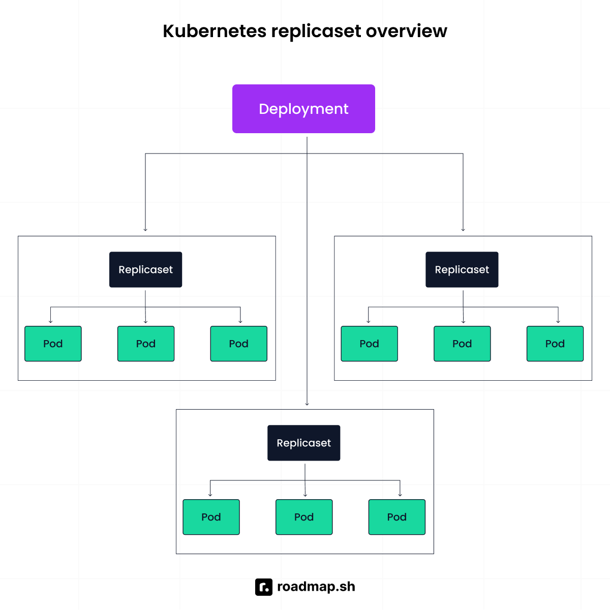 You declare the desired count. From that point, it watches the actual state. If one pod crashes or a node fails, a new one is created on a healthy node. If there are more pods than specified, the extras are terminated.