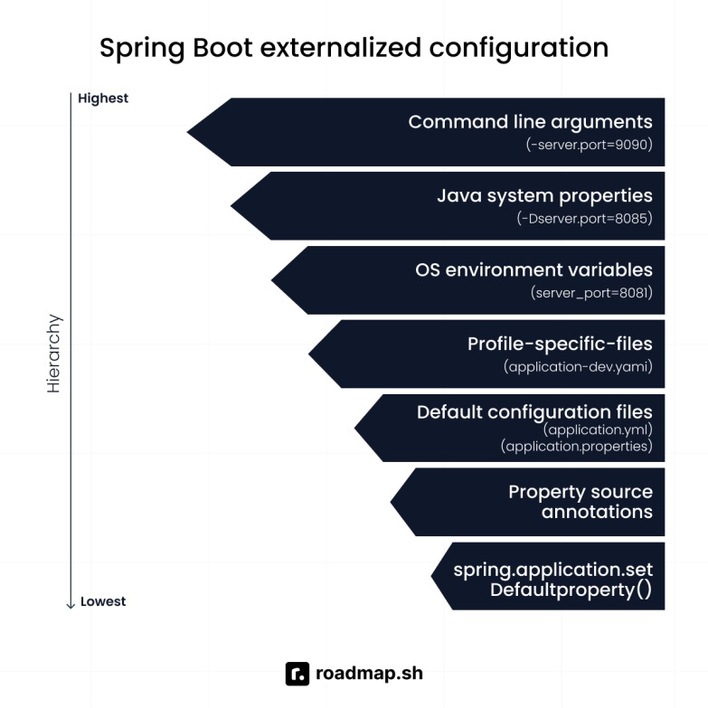 Externalized configuration allows you to separate configuration from application code so that the same application can run in different environments without modification. Spring Boot supports other externalized configuration sources, such as environment variables, command-line arguments, profile-specific files, and cloud config servers.