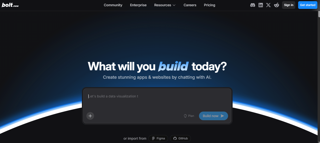 Bolt is a browser-based AI app builder launched by StackBlitz in October 2024. You can access it from any browser tab on any device, with no installation or local setup required, via WebContainers technology. It's powered by Anthropic's Claude, which helps generate the code for your app. With Bolt, you can build apps with frontend, backend, and database at once.